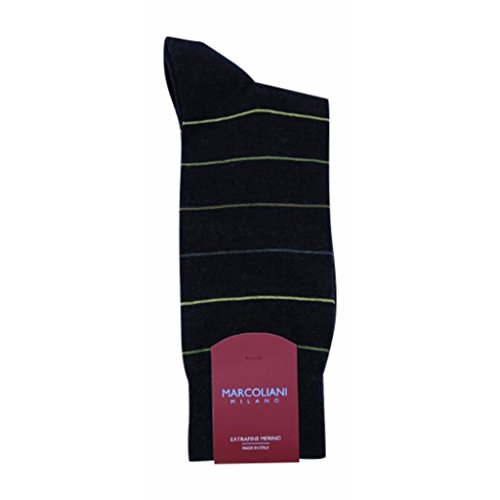 -. Binding : Apparel -. Brand : Marcoliani Milano -. Department : mens -. Feature : Using the finest of fabrics and materials, these socks are extremely soft and will remain comfortable through multiple wears / Sizing is one size fits most on these durable socks that come with a reinforced heel and toe / The colors in each pair of Marcoliani socks remain bright even after numerous washings due to its high quality construction and choice of materials / These socks are machine washable, making them fashionable and practical / Featured in 2-ply twisted yarn, the socks maintain mechanical integrity from frequent usage -. IsAdultProduct : 0 -. ProductGroup : Apparel -. ProductTypeName : SOCKSHOSIERY -. Title : Marcoliani Men's Extrafine Merino Wool Scala Stripe Mid Calf Socks