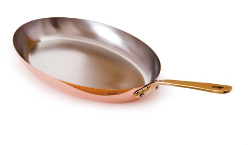 -. Feature : 12-inch oval pan for frying fish or vegetables / Efficient 1.5 mm copper exterior conducts heat quickly / Non-reactive stainless interior lining holds up to heavy use and cleans easily / Attractive bronze handle with stainless rivets for durability / Hand washing recommended; limited lifetime warranty