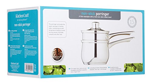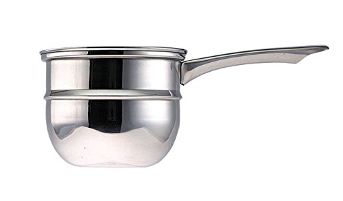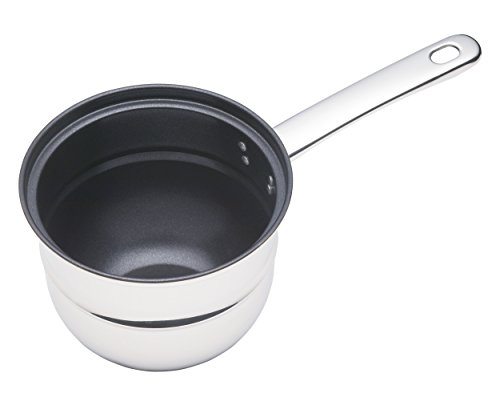 features a lower pan which envelopes the upper saucepan in water, thereby maintaining an even temperature to prevent the burning or curdling of sauces and custards, and the burning of foods such as scrambled egg.