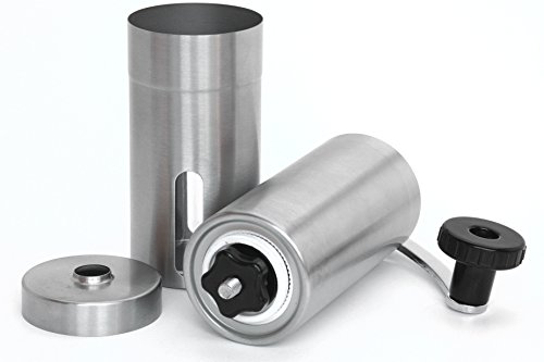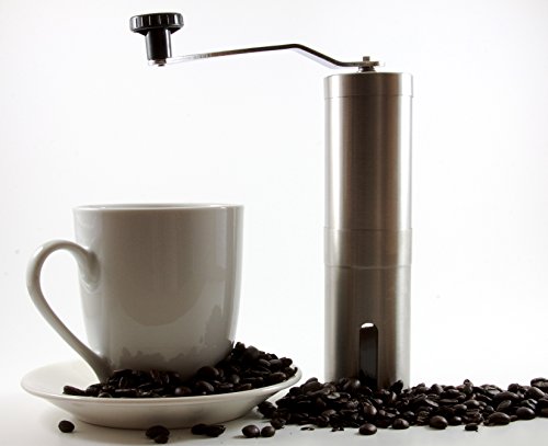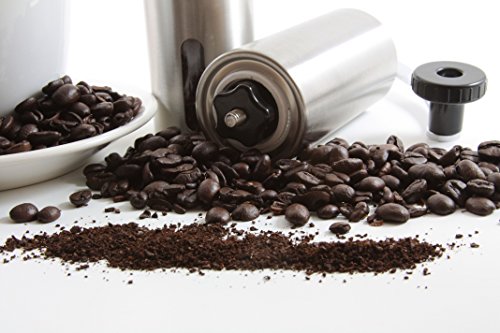 Simply the Best Choice for Your Coffee! Enjoy your favorite coffee with our slick and durable stainless steel coffee bean grinder. No matter the grind or flavor, you won't be disappointed. Espresso, French Press, Café Latte or just a regular coffee; with your hand-held coffee grinder, the choice is yours. Function & Beauty Come Together! Our coffee grinder's robust stainless steel (18/10) container keeps rust away and the conical ceramic burr grinder ensures a quiet, low-heat grind to keep the taste of your coffee at its best every time. All this plus a sleek, lightweight design with a beautifully polished finish are enough to turn anyone's head! Our grinder is the 'total package' and would be the Perfect gift idea for mother's day, father's day or even Christmas. Freedom to Go! Take it anywhere without concern for breakage, weight or cords. Camping, boating, business or a visit to your in-laws; your durable, light-weight, manual coffee grinder is portable and ready to go when you are! Easy as 1, 2, 3! Ensure the perfect grind for your favorite coffee in 3 easy steps: 1. Adjust the bottom knob to set your grind preference 2. Fill the grinder with fresh beans and replace the lid 3. Crank the handle... and voila! You've got perfect coffee grinds for 2! Start Enjoying Your Favorite Coffee Today! Click ADD TO CART to get your Kitchen Insiders manual coffee grinder! With a lifetime guarantee, the only thing you will regret is not buying it sooner!Feature