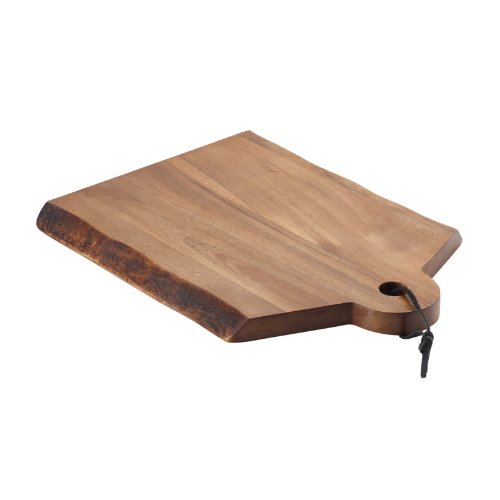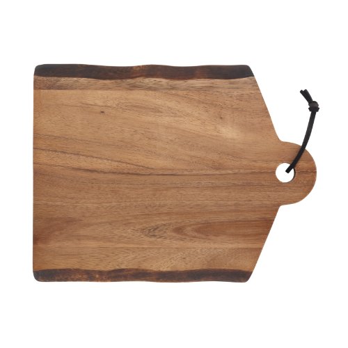 - This rustic-styled wood cutting board is crafted from sustainable acacia wood and boasts stunning exposed wood grain
