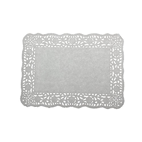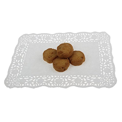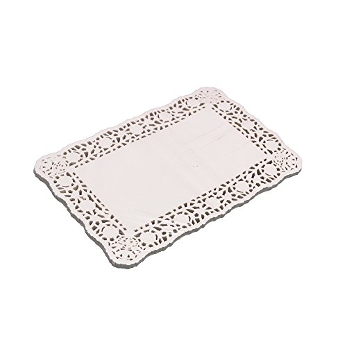 LJY 100 Pieces White Lace Rectangle Paper Doilies Cake Packaging Pads Wedding Tableware Decoration (8" x 12")