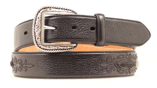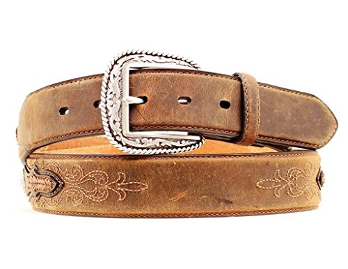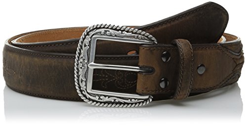 Studio : Ariat Men's Accessories Publisher : Ariat Men's Accessories Binding : Apparel Product Description Enjoy comfort and durability from this men's ariat belt by m and f western products . Brown strap measures 1-1/2 inch wide, with a subdued stitching pattern. Small silver conchos perfectly compliments this great belt. Stylish western look for dress up or your horse riding wardrobe. 0