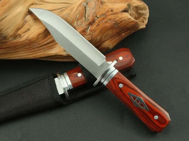 전체 길이: 175 미리메터블레이드 길이: 95 미리메터핸들 길이: 76 미리메터블레이드 폭: 25 미리메터블레이드 두께: 2.8 미리메터블레이드 재질: 5Cr13Wov몸무게: 143 (포켓)경도: 상당 56HRC표면: 샌딩핸들 재질: 레드 컬러 나무 핸들다른: 나일론 슬리브