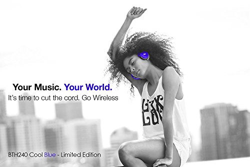 Kinivo BTH240- BLUE Bluetooth Stereo Headphone Supports Wireless Music Streaming and Hands-Free calling - Cool Blue