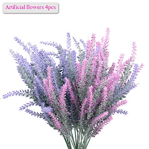 Lavender Bouquet, Meiwo 4pcs Artificial Flowers Lavender Bouquet for Garden / Home / Cafe / Office / Wedding Decor (Purple/Pink)
