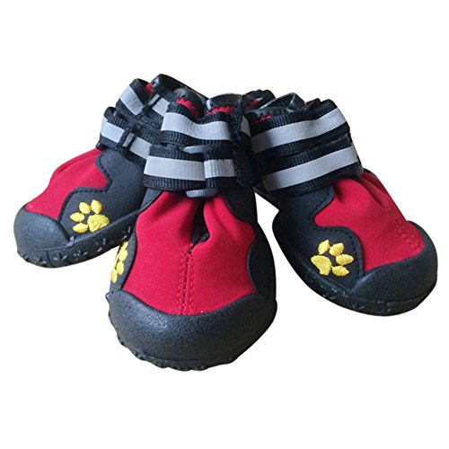 -. Feature : Meterial:PU+Waterproof leather / Perfit for everyday wear,holiday,parties,and photos,keep your dog stylish and handsome / Especially desgin for Husky Golden Retriever Samoyed Dog and other large dogs / Zip fastener and Velcro Tape design for easy put on and take off / Note:Different shoes has different size,please pay attention to the Size Reference before buying