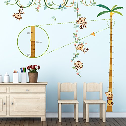 -. Title : Decowall DA-1607 Monkey Height Chart Peel and Stick Nursery Kids Wall Decals Stickers