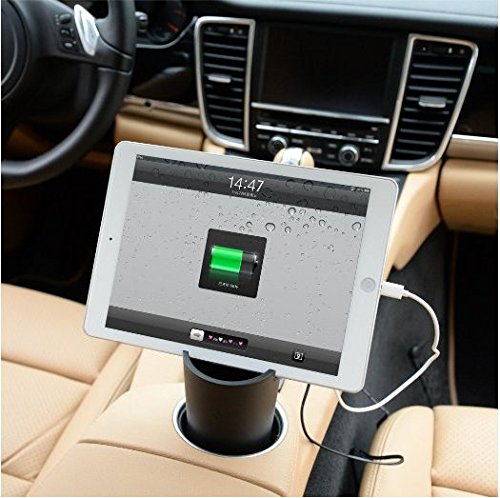 YTR.co® Multi-functional Car Charging Cup Holder - 3 Port USB (2.1A) Car Charger - Multifunction USB Car Charger / Phone-Tablet Stand / Card Slot