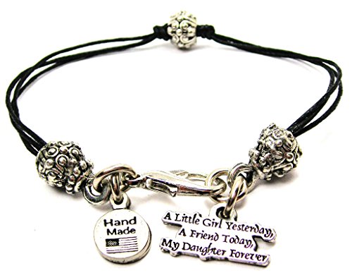 -. Title : A Little Girl Yesterday, A Friend Today, My Daughter Forever Spiral Pewter Charm on a Pewter Beaded Black Waxed Cord Bracelet By Chubby Chico Charms, Fits up to 8 Inches