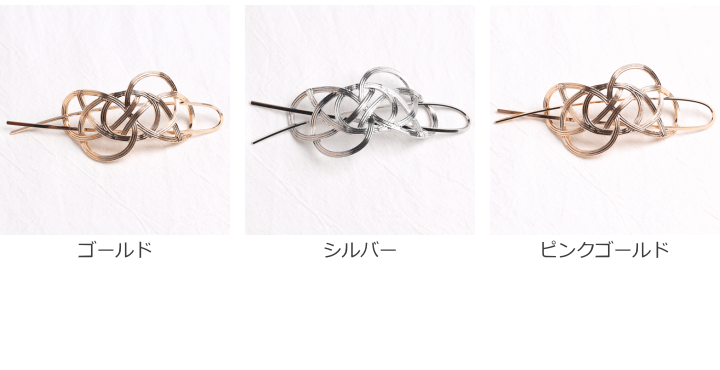 | 商品説明 | 質感やテクスチャにこだわったヘアピンです。 水引きをイメージした繊細ながらボリューム感のあるデザイン。 華やかで大人めキレイなヘアスタイルに。 |