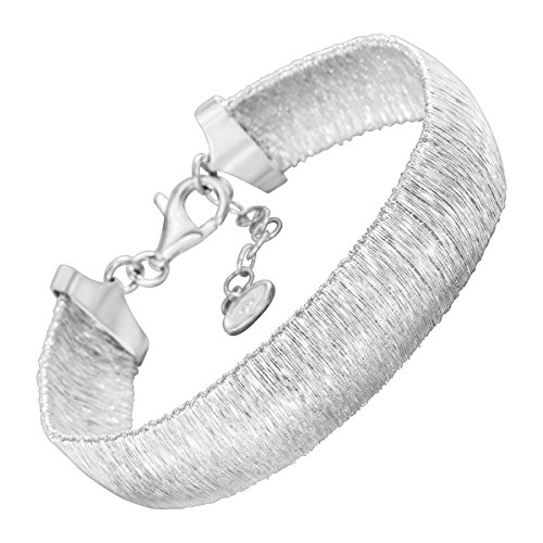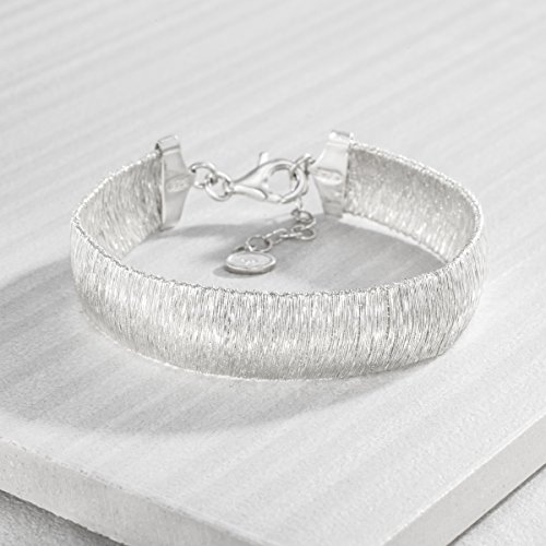-. Feature : Give your wrist a subtle glow with the Shimmer Bracelet, crafted in sterling silver / LAYERED UP: Delicate looks that, when layered together, pack a huge style punch! Subtle sterling silver necklaces and stackable rings can be worn alone for a dainty, everyday look or layered on top of one another for a statement-making look with minimal effort. Try wearing necklaces with varying lengths for a trendy graduated effect or stack rings on the same finger for an instant dose of glam. / POLISHED-FINISH STERLING SILVER: Pieces featuring a polished-finish are perfect for those who want their jewelry noticed, making them perfect go-to pieces for a fancy event or a night out on the town / Bracelet measures 8 inches in total length (including a 1-inch extender) and 1/2 inches in width and is finished with a lobster clasp / Made in Italy
