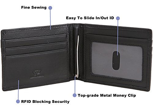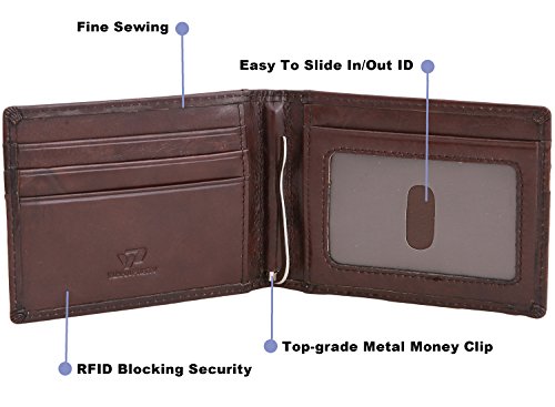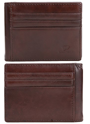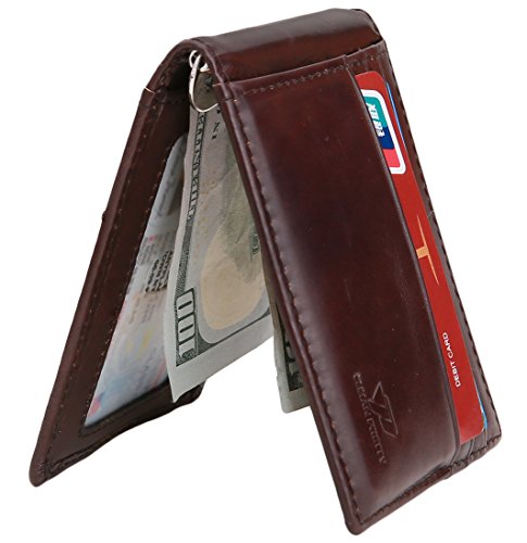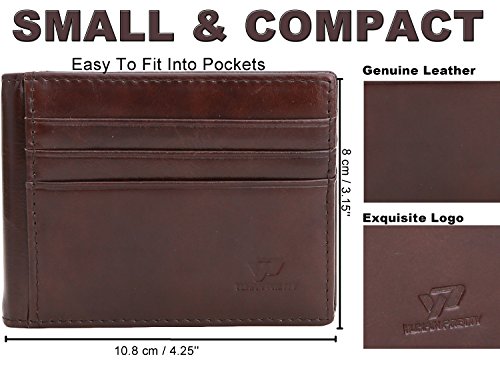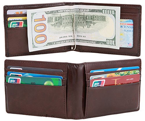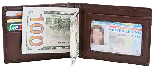 New Arrival: Mens Card Wallet With Money Clip - RFID Blocking Genuine Cowhide Leather Slim Bi-fold Wallet With 1 ID Window and 9 Card Slots Cowhide leather: The Bi-fold Money Clip Card Wallet is made of 100% Genuine Oil Wax Cowhide Leather, and It is Soft and Durable. Compact Slim Design: L*W*H: 10.8 x 8 x 0.1(CM). It is Easy to Fit Your Front/Back Pockets in Jeans or Trousers When You Travel, Hiking or Running. Large Capacity: 1 ID Window and 3 Card Slots with 1 Metal Money Clip Inside and 6 Card Slots Outside. It Fits All Your Needs. RFID Blocking Designed Card Wallet RFID Protection Designed Material Stop Electronics Thieves From Scanning and Obtaining Your Vital Information of ID Card, Credit Cards and Other Important Cards. 1 Year Quality Guaranteed and 100% Money Back Guarantee 0 |