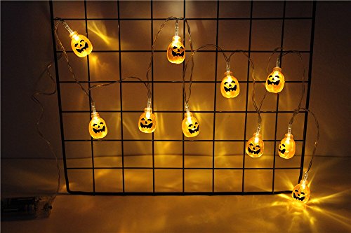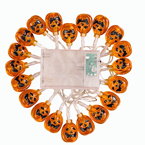 - String lights of 20 pumpkins on an well made cord. Battery Powered, ON/OFF switch, quite easy to use
