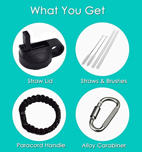 ✔ LID & 2 STRAWS & 2 STRAW BRUSHES & Paracord Handle & Alloy Carabiner INCLUDED: Get the lid, and comes with two separate straws and brushes, trim them at a desirable length depending on your Hydro Flask; Detachable Paracord Loop Handle allows a comfortable and secure carrying solution; The Alloy Carabiner is great to hold items, Idea for hanging on the bag and ropes etc.