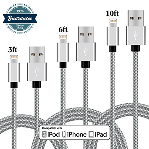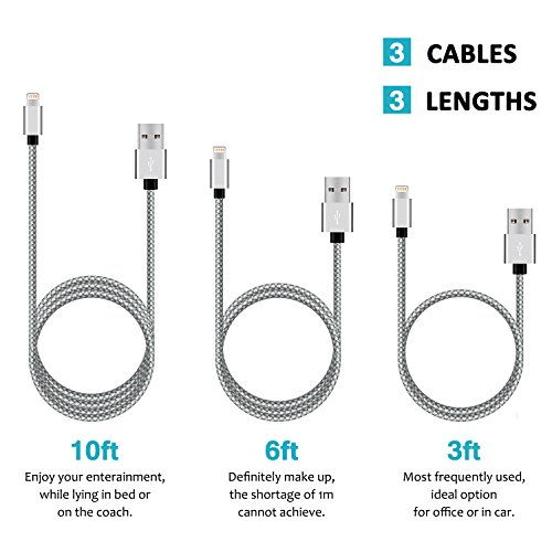 [Perfect Length Combination] You can get 3pack 3ft, 6ft, 10ft 8pin lightning cables. 3ft cable put on office, 6ft cable for car, extra length 10ft cable for home.
