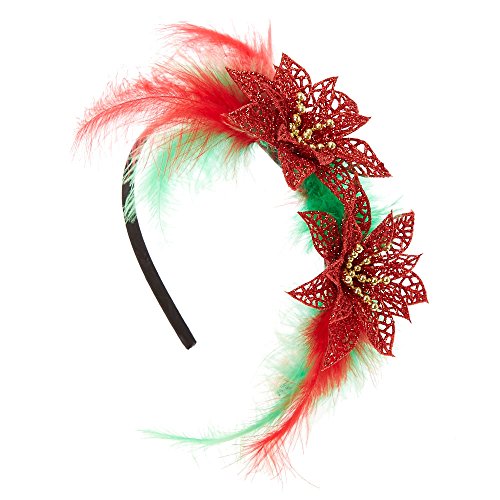 Studio : Claire's Publisher : Claire's Binding : Apparel Product Description Merry, bright and everything nice! Claire's poinsettia headband features glitter lazer cut poinsettias and red and green feathers. It's perfect touch to your Christmas party look. Materials: Plastic Decoration: 3.5" D This item is only available in-store for our Canadian customers 0