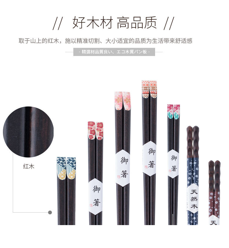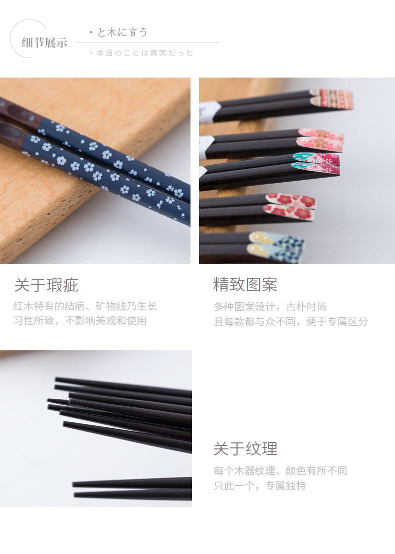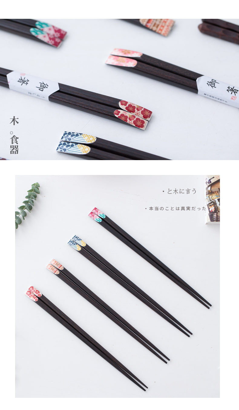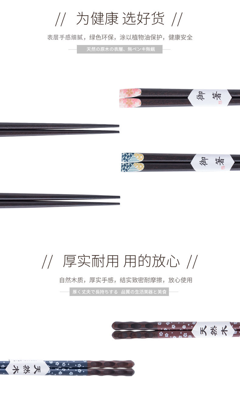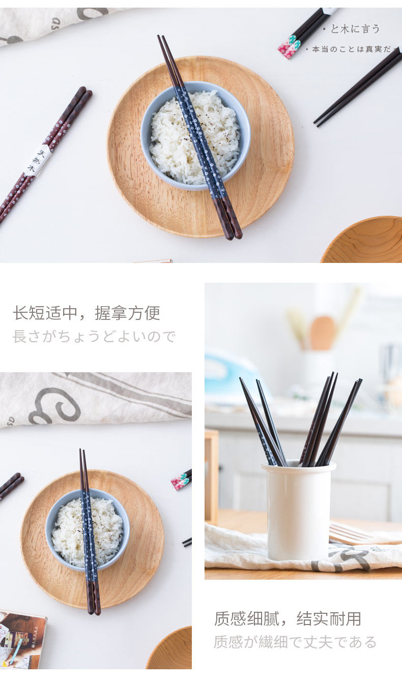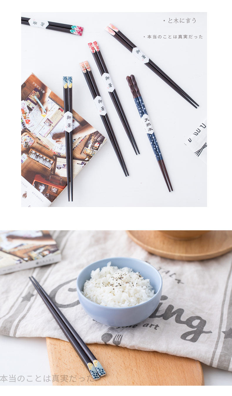 日式创意筷子家用实木尖头快子木质筷子套装家用日本樱花筷1双装