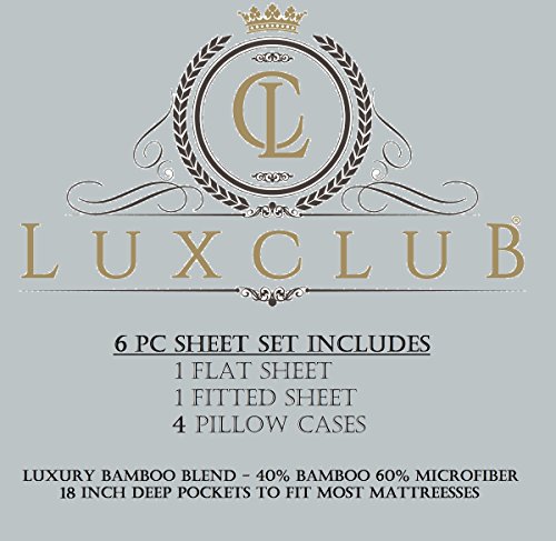 6 PC LuxClub Bamboo Sheet Set w/ 18 inch Deep Pockets - Eco Friendly, Wrinkle Free, Hypoallergentic, Antibacterial, Moisture Wicking, Fade Resistant, Silky, Stronger & Softer than Cotton - White Full