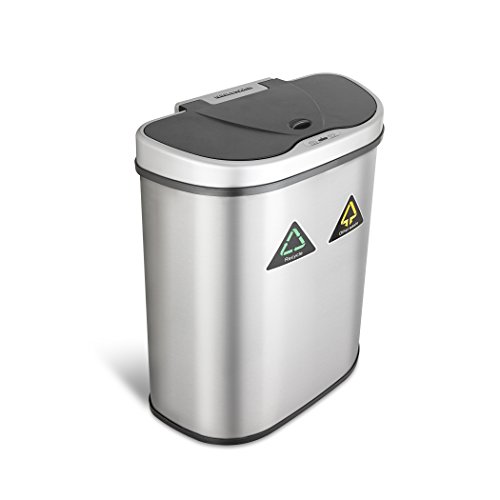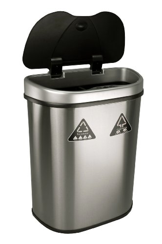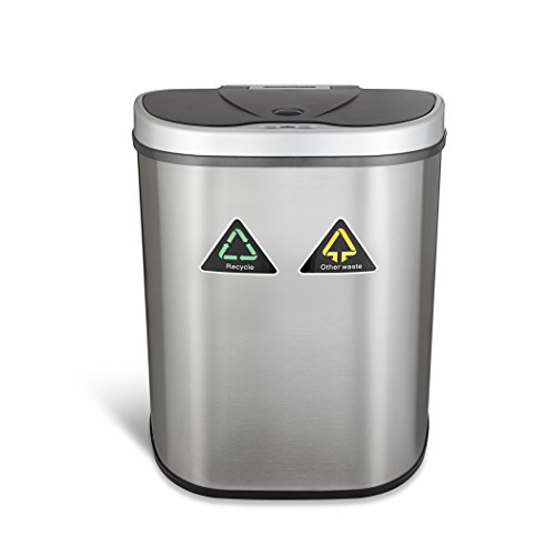 Nine Stars Trash Can/Recycler, Infrared Touchless Automatic Motion Sensor Lid, Stainless Steel, 18.5-Gallon