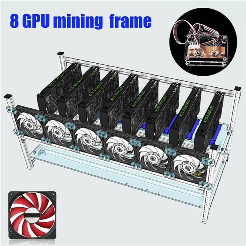 1セット採掘リグフレームケース用8 gpuでワンスイッチ& #65288;ファンオプション& #65289;