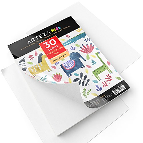 Arteza Kids Watercolor Kit, Set of 36 Vibrant Color Cakes, 1 Water Brush Pen and 1 Watercolor Pad (Set of 3 Items)