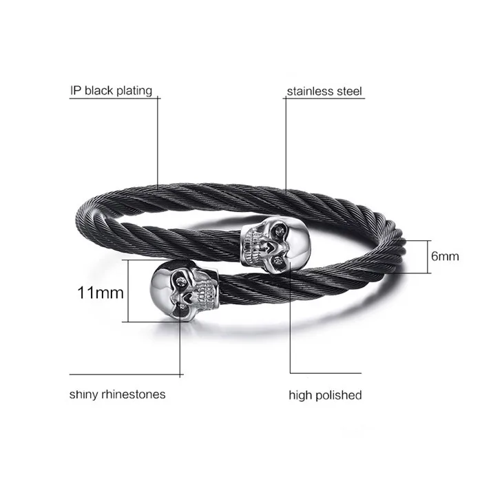 Function:Cable Wire Chain Biker Skull Bracelets