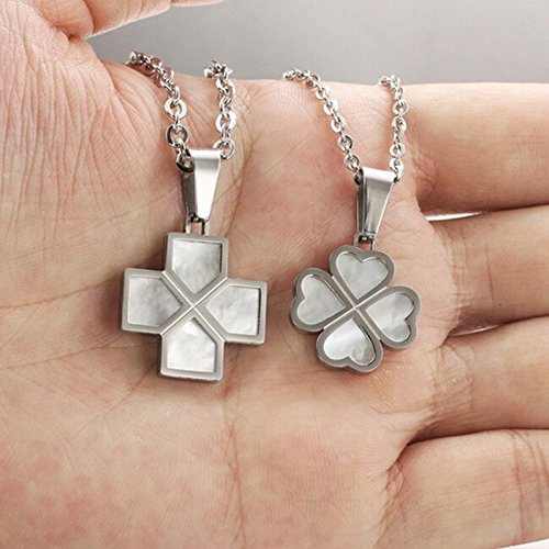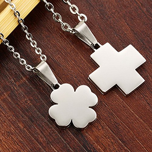 -. Feature : Classic Four Leaf Clover Cross Shape Stainless Steel Pendant Necklace / Man Pendant:2.1cm Man Chain Length:50cm Weight: 4g / Woman Pendant:1.8cm Woman Chain Length:45cm Weight: 3g / Materials:Stainless Steel / Gift Bag with Brand Name "Infinite U Jewellery"