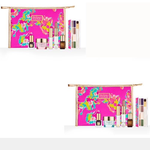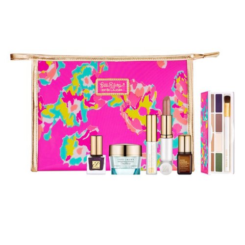 -. Feature : Seller's choice of moisturizer (0.5 oz): Resilience Lift Firming/Sculpting Face and Neck Creme Broad Spectrum SPF 15 or DayWear Advanced Multi-Protection Anti-Oxidant Oil-Free Creme SPF 15 / Pure Color Long Lasting Nail Lacquer in Smashed (0.17 oz);Sumptuous Bold Volume Lifting Mascara in Black (0.1 oz);Pure Color Long Lasting Lipstick in Tiger Eye (full size) / Pure Color Eyeshadow Palette in shades Hot Cinnamon, Nude Fresco, Sugar Biscuit, Tempting Mocha, Ivy Envy, Ivory Slipper, Smokey Ember, and Amethyst Spark / Advanced Night Repair Synchronized Recovery Complex II (0.24 oz) / Exclusive Lilly Pulitzer print cosmetic bag