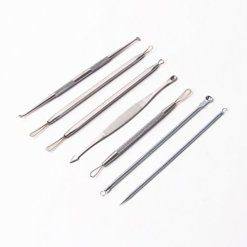 -. Feature : The package comes with 7 extractors instruments perfectly packed inside an easily portable zip case. Extremely useful you can easily take your case anywhere you want. / As it will be used for treating blackheads and blemish from your skin. It is made with extreme care so as to provide you with the best possible result / The tools are made with professional high quality material which results in sleek, precise and very balanced extractor instruments. Good for its purpose for treating pimples, facial impurities and blemishes. / Extremely easy to use, offers great comfort, very well balanced comes with Four Looped Tools, Needle Extractor Tool,Tool and extractors which can treat any facial impurities. / Equipped with 7 extractors instruments like pullers and pushers which can easily remove blackheads, comedowns, acne and other facial impurities. Removes all blemishes if used correctly