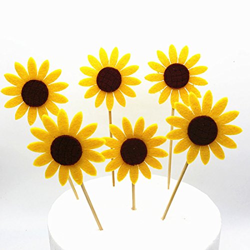 GEORLD Set of 24 Sunflower Cupcake Toppers Party Picks Cake Flower Decoration
