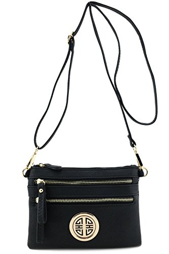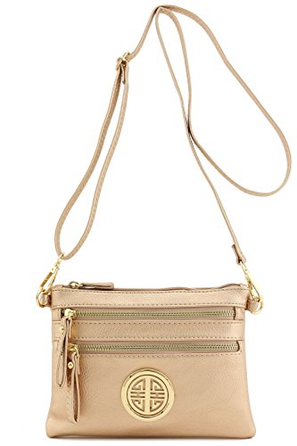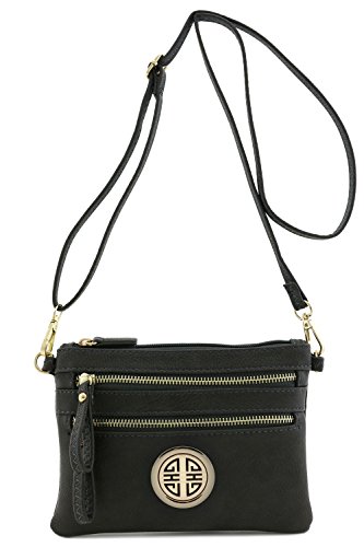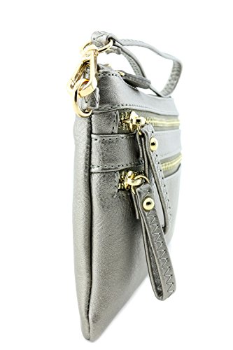 Multi Zipper Pocket Crossbody Bag, Total 3 zipper pockets at outside and 1 zipper pocket inside. It can be used as wristlet purse or crossbody bag.