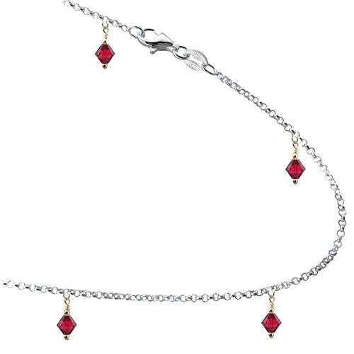 -. Title : Siam Colored Red Crystals with .925 Sterling Silver Link Anklet, Bracelet. 7,8,9,10,11,12,13 Inches