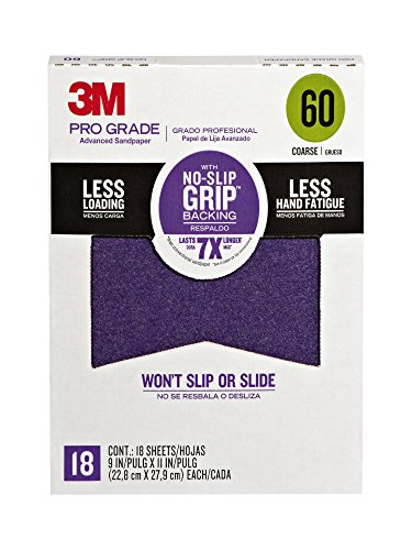 3M 26060CP-P-G Pro Grade No-Slip Grip Advanced Sandpaper, 9 X 11-Inches, 60 Grit