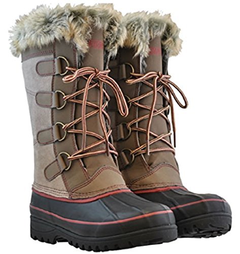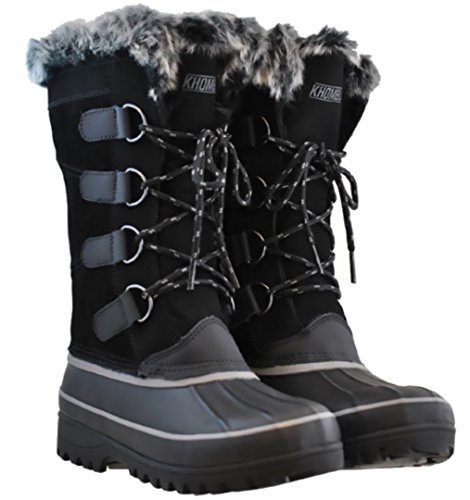 Tall snow boot featuring waterproof duck-shoe vamp, D-ring