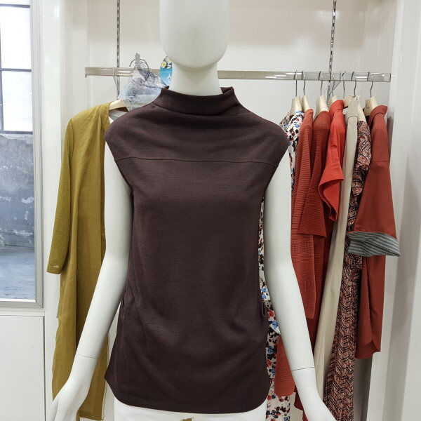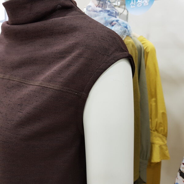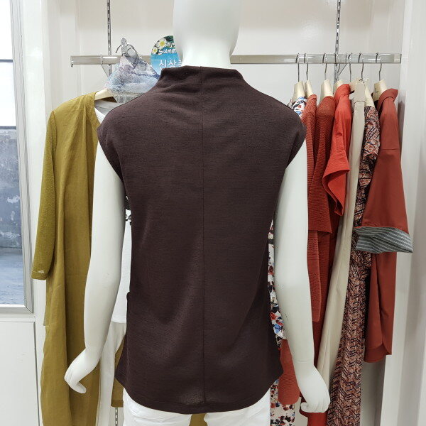 반넥이 루즈하게 떨어지는 민소매 저지 티셔츠입니다