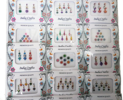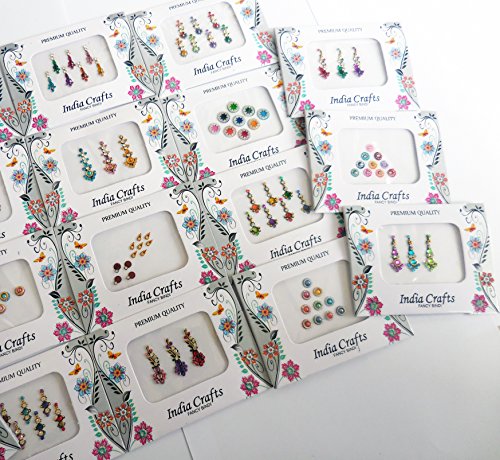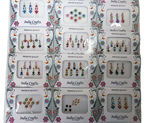 Studio : Sheesham Ivy LLP Publisher : Sheesham Ivy LLP Binding : Misc. Product Description * The bindi is arguably the most visually fascinating of all forms of body decoration. Bindi attach great importance to this ornamental mark on the forehead between the two eyebrows. This Listing if for :- ? 12 Multicolored Different design Packs of Fine Crystals Exclusive Fancy Designer Bindis. ?We Randomly Select packs and send to you,also try to send designs shown in picture. * Different Designs with Sparkling Crystals, Rhinestone,Glitter Art Work which gives you a wide variety to choose your Bindis as per Occasions with your Costume. ? Perfect accessory for Forehead, Face, Nails, Belly Button, Body, Art Crafts Project work, Cell phones, Bags etc. ? Our Bindi are Self Adhesive,ready to use and reusable.All BINDIS are Delicate so need to use carefully insertion out to prevent any damage, fell apart ,damage. ? PRODUCT AUTHENCITY: We send you all bindi packs safely in India Crafts Packaging as shown in pic. .If you don't receive packs as shown in pic with our packaging ,you can return item and report to Amazon. We make you sure that all our Designer Bindis are made to get compliments from your love once, definitely you will satisfied and like Collection so buy with confidence .But in any case if our creation doesn't meet upto your expectations for Any Reason, with in Amazon FBA Time Frame You Can Return it as it is as You Received we will give you Full Refund . * HOW TO USE: All gems are applied just like a sticker and can be used a few times, once the glue has dried out they can be re-used using eyelash glue. ? 100% MONEY BACK GUARANTEE: If, for whatever reason, you don't absolutely love your order, simply return it, and we'll refund every penny (or send a replacement, if there is a problem). ? QUICK DELIVERY: Amazon prime will deliver your beauty products to you as soon as possible for your parties, festivals and holidays. 0