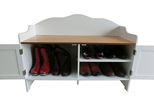 -. Feature : It is great ideas for storage of shoes & boots,Flat packed, Assembly requires. Color:White&Veneer top / Inside 2 shelves are adjustable & removable for more flexible storage / Made of durable Painted MDF and Wood Composite / Measures W35.83*D14.96*H25.98 inches &Seat height:17.3 inches. / Attention buyers: please buy from amazon's homecharm or homecharm-intl,Do remember that some offers from other sellers,even very cheap offers are fraudulent ! please note, thanks .Homecharm