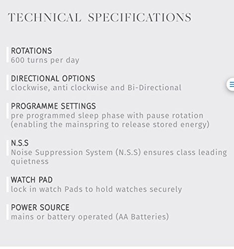 -. Binding : Watch -. Brand : Dulwich Goodwood Collection -. Department : Unisex-adult -. EAN : 7630021326785 -. Feature : Rotations : 600 tuns per day / Directional options :clockwise anti-clockwise and bi-directional / Program settings preprogrammed sleep phase with pause rotation enablingthe mainsP.R.Ing to released stored energy / N.S.S :noise suppression System to ensure class leading quietness / Watch pad lock in Light Green watch pads to hold watch securely, power source all plugs ready or battery operated ( AA batteries) -. Label : Dulwich -. Manufacturer : Dulwich -. MPN : 71147 -. PartNumber : 71147 -. ProductGroup : Watch -. ProductTypeName : WATCH -. Publisher : Dulwich -. Studio : Dulwich -. Title : Goodwood Dulwich Light Green Single Watch rotator Watch Winder