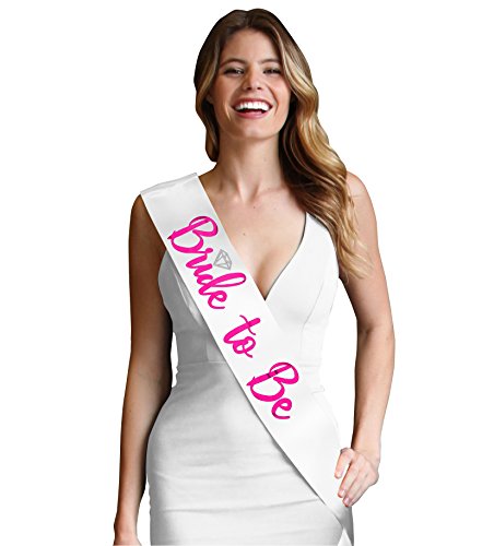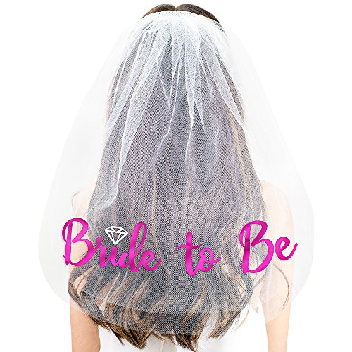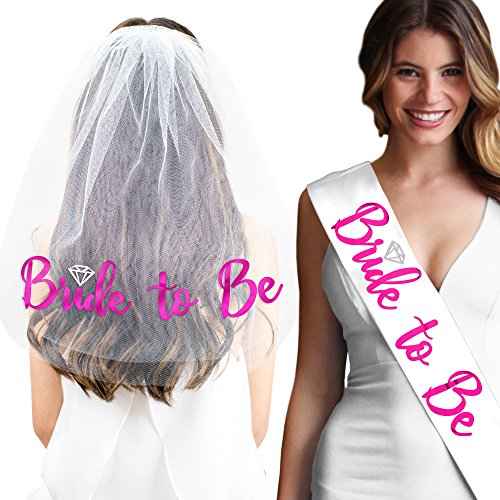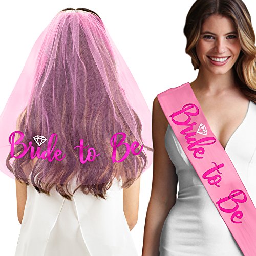 Binding : Apparel Product Description THE PERFECT GIFT SET FOR THE BRIDE TO BE! A RhinestoneSash exclusive - This adorable set includes a satin sash tulle veil that says 'Bride To Be' in metallic pink foil. Our premium satin sashes are designed to drape perfectly across the body and the veil has two layers with an attached sparkle trim comb. This sash and veil set is the perfect for the Bride to wear to her Bachelorette Party, Bridal Shower, Engagement Party or any pre-Wedding event! Bride Gift Set Features: - Sash Color: Your choice of White Pink or Black