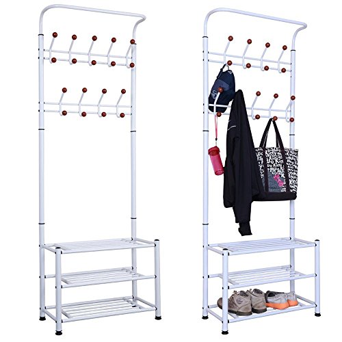 -. Feature : Good combination of clothes and shoe rack. / It can store clothes, hats, umbrellas, bags ,shoes, etc. / Separate sections for those goods. / 18 solid hooks protect your clothes carefully. / Max. Loading: each hook: 2.5 Kg/5.5Lb; each rack: 15Kg/33.1Lb; total: 67.5Kg/148.8Lb