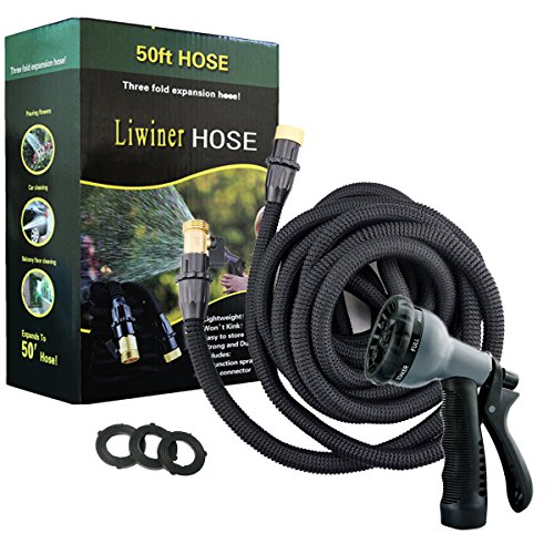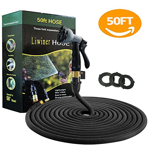 Liwiner Expandable Garden Water Hose Pipe 50 FT Flexible & Lightweight Retractable Hoses Pipes with 8 Function Spray Nozzle/Leakproof Brass Fittings/Anti-Burst Extra Strength Fabric Expanding Hose