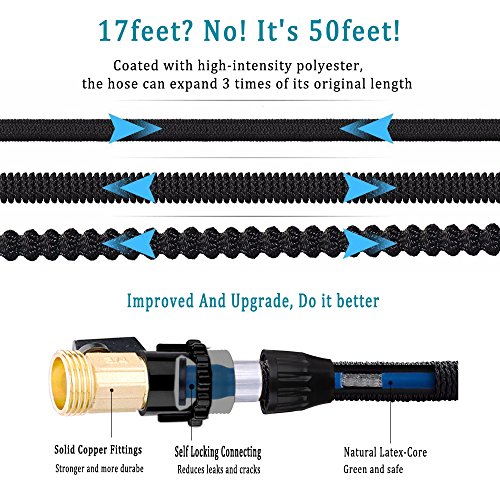 - ✅Perfect Gift & Warranty --50FT expanding garden hose provides beautiful packaging box ,Great gift for you and your parents or friends , 100% MONEY BACK GUARANTEE! We would like to offer FULL refund or QUICK new replacement if there is any question or problem
