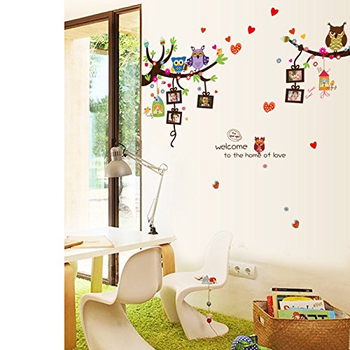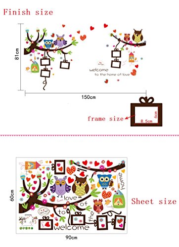 Amaonm Removable Nursery Tree Braches Family Owls Wall Decals Animals Wall Stickers Red Love Heart Shap & Photo Picture Frame Lettering DIY Wall...