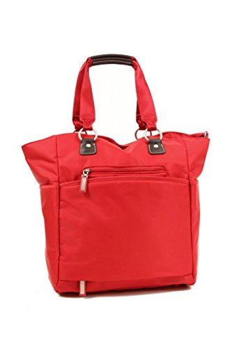 -. Brand : biaggi -. Department : unisex-adult -. Feature : As Seen on Shark Tank / Zippered sleeve to slide bag over a trolley handle / High performance and fashionable jewel toned nylon fabric / 2 Side pockets, 2 exterior zippered pockets, and interior zippered pocket -. ProductGroup : Apparel -. ProductTypeName : LAGE -. Title : Biaggi Contempo Soft 16" Fashion Tote