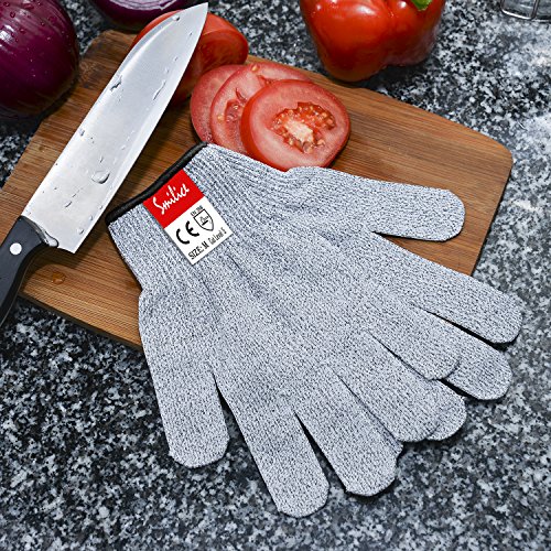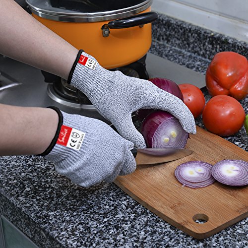 - Multi-usage: Cut-resistant gloves do a good job at kitchen, restaurant or workshop. This will be ideal for using the box grater, rasp or mandolin, perfectly protecting your hands when slicing, cutting, chopping, peeling and grating in the Kitchen. Also useful in wood carving, oyster shucking etc... And it is easy to hold the slippery food.