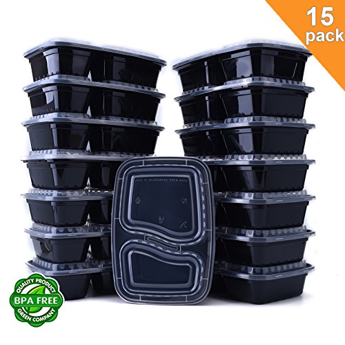 Meal Prep Containers, 15-Pack 2 Compartment Bento Box with Lids - Stackable, Reusable, Leak Resistant, Microwaveable & Dishwasher Safe, BPA-Free Portion Control Food Storage Containers (28oz)