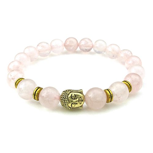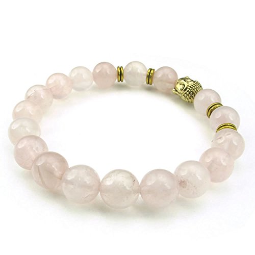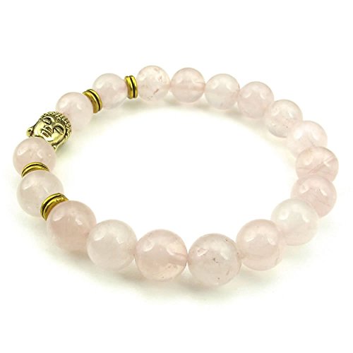 -. Title : KONOV Crystal Rose Quartz Womens Bracelet, 10mm Natural Energy Gemstone Buddha Mala Yoga, Pink Gold