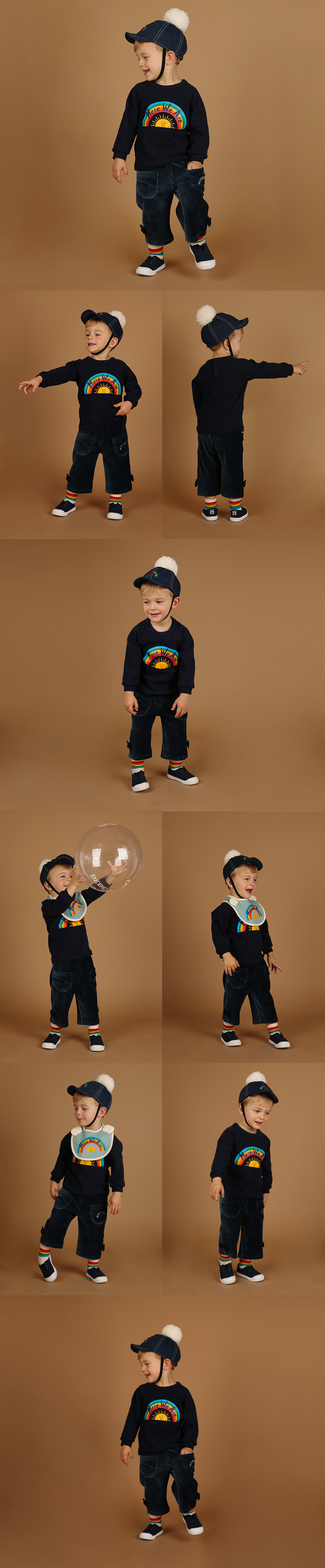 베베드피노 레인보우 베이비 벨로아 리본 팬츠입니다. 독특한 Blue green 컬러의 Velour 골지 원단으로 제작했습니다. 주머니에는 Rainbow 포인트 자수가 들어가 있으며 밑단에 깜찍한 리본이 돋보이는 제품입니다. 허리 부분은 밴딩 처리하여 아이들이 입고 활동하기에 편안합니다.