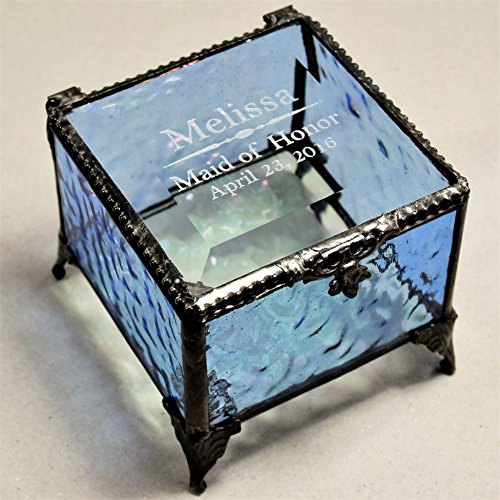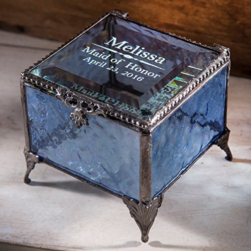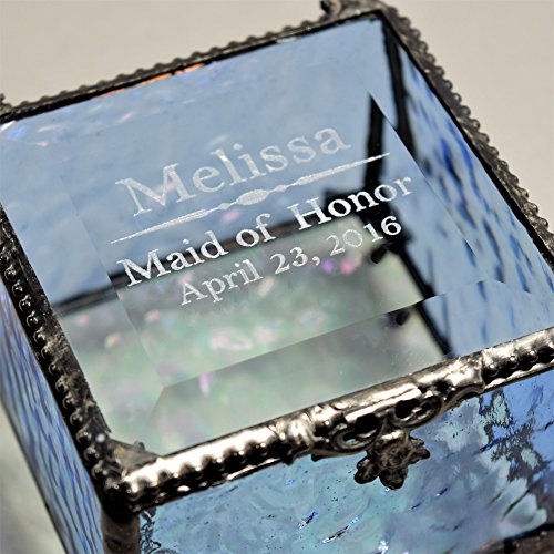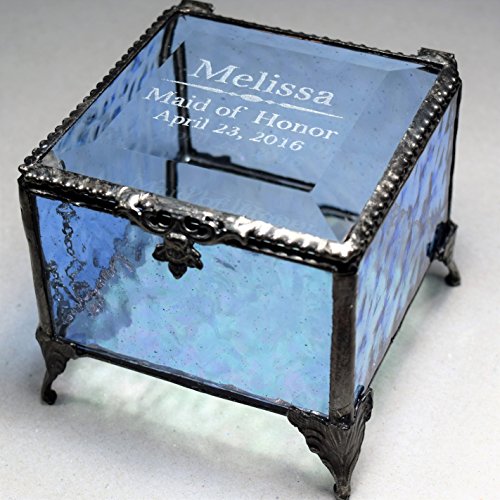 -. Binding : Kitchen -. Brand : J Devlin Glass Art -. Color : Blue -. EAN : 0714983435673 -. Feature : Pale blue sides, polished bevel top, an iridescent glass bottom, decorative metal edging and feet / Personalize this jewelry box for your bridal attendants / Engraved glass keepsake box is perfect to display your jewelry, trinkets and momentoes / Handcrafted stained glass box made with lead free solder to protect you and the environment / Designed and Manufactured by J Devlin Glass Art 3 1/4" x 3 1/4" x 3 1/4" -. IsAutographed : 0 -. Label : J Devlin Glass Art -. Manufacturer : J Devlin Glass Art -. Model : Box 837 EB236 -. MPN : Box 837 EB236 -. PackageQuantity : 1 -. PartNumber : Box 837 EB236 -. ProductGroup : Home -. ProductTypeName : HOME -. Publisher : J Devlin Glass Art -. Size : 3x3 -. Studio : J Devlin Glass Art -. Title : J Devlin Box 837 EB236 Personalized Bridesmaid Keepsake Gift Engraved Blue Stained Glass Jewelry Box -. UPC : 714983435673